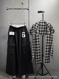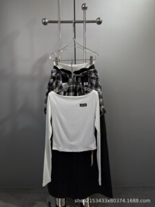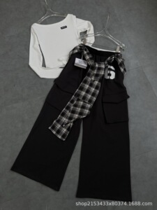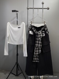 25新款M家一字肩长袖标签上衣+美式AW工装裤减龄百搭时尚套装