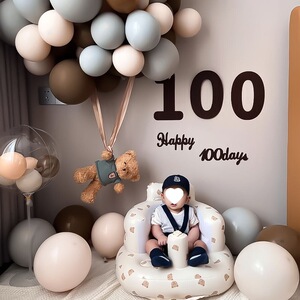 小熊气球套装【横幅百天+座椅】送备用气球☆✓