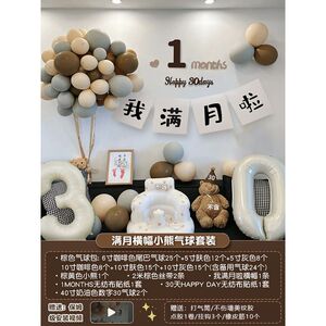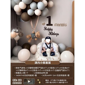 小熊气球套装【横幅满月+座椅】送备用气球☆✓