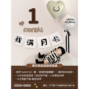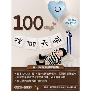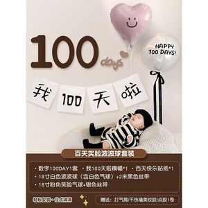 满月百天布置周岁装饰小熊气球宝宝仪式感拍照道具场景背景布30天