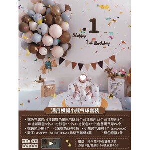 小熊气球套装【横幅周岁+座椅】送备用气球☆✓