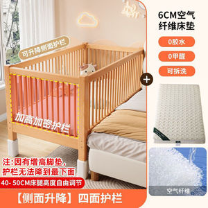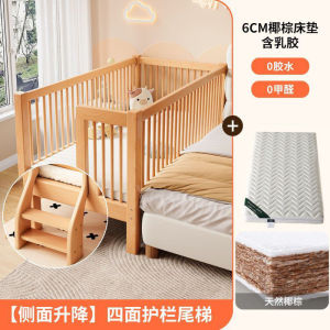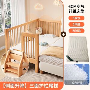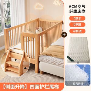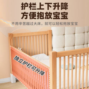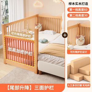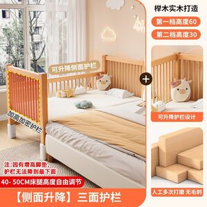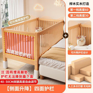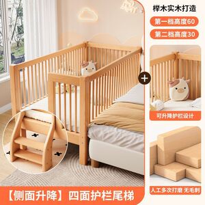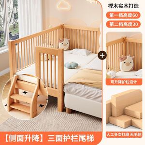 榉木儿童拼接床升降护栏加宽床边小床女孩宝宝床实木婴儿拼接大床