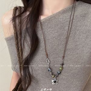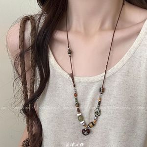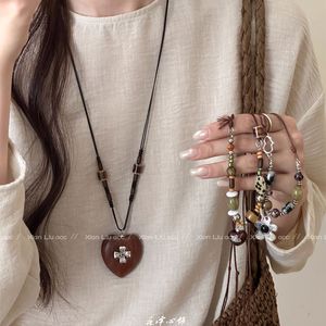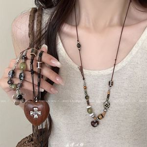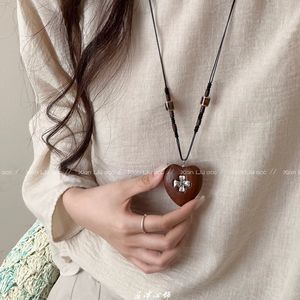 复古木制爱心十字架项链女2025新款民族风长款毛衣链气质百搭配饰