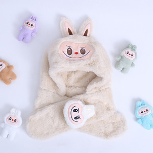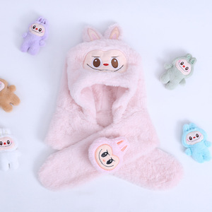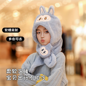 冬季儿童帽子围巾一体男童女童labubu毛绒帽防风护耳帽加厚保暖