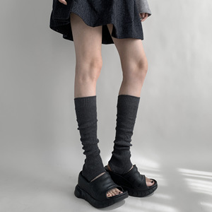 秋冬纯色竖纹袜套堆堆袜日系白带小腿袜针织jk保暖慵懒风叠穿腿套