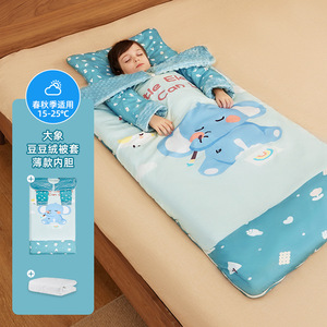 婧麒儿童睡袋秋冬季恒温加厚防踢被子神器中大童宝宝睡袋四季通用