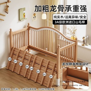 婴儿床拼接大床可升降护栏加宽床边床宝宝单人小床实木儿童拼接床