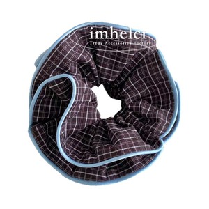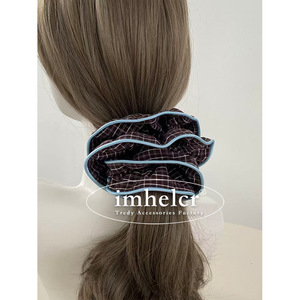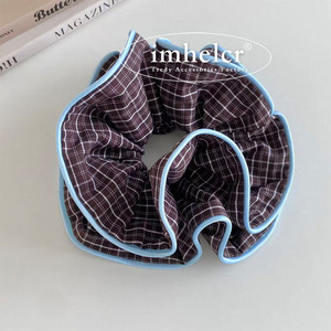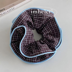 韩系ins复古咖色格子蓝拷边大肠发圈气质慵懒风扎丸子头绳发饰女