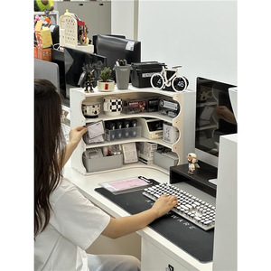 【工位大改造】办公室半包围转角置物架拐角多层水杯杂物收纳架