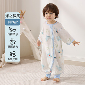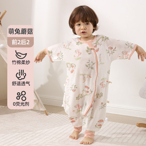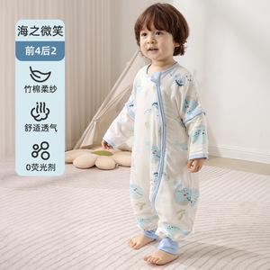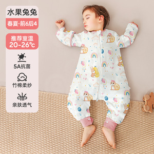 婧麒小清心婴儿睡袋春秋款竹棉纱布宝宝儿童睡袋防踢被子四季通用