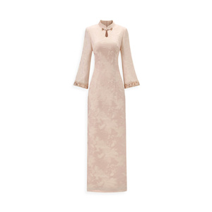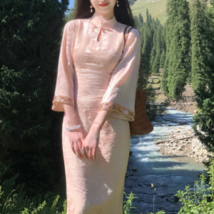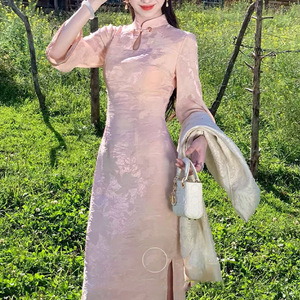 【甜月香】新中式珠光提花改良旗袍女早秋立领镂空连衣裙七分袖潮