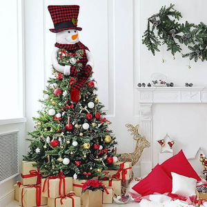 圣诞节装饰品红黑格大号雪人公仔树顶星居家酒店圣诞树树顶装饰品