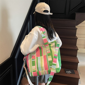 2025新款韩版大容量夏季休闲通勤单肩包学生上课外出甜美帆布包