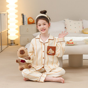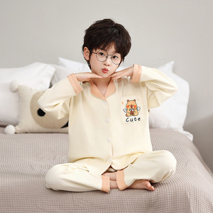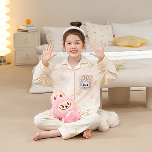 儿童睡衣春秋款长袖开衫小中大童宝宝卡通仿棉翻领家居服套装外穿