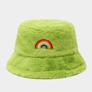 秋冬渔夫帽潮欧美跨境新款彩虹刺绣加厚保暖帽子女户外百搭遮阳帽