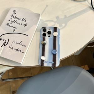 撞色蓝棕条纹16Promax手机壳适用苹果15Promax立体宝石14Pro双层
