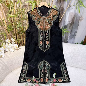 重工刺绣缎面马甲女2025秋季新款立领单排扣马夹纯色民族风坎肩女
