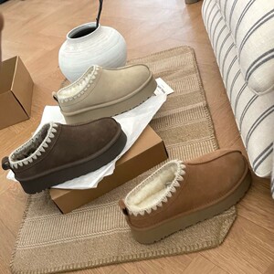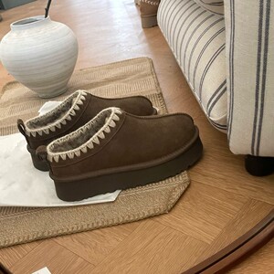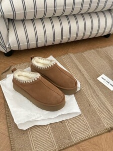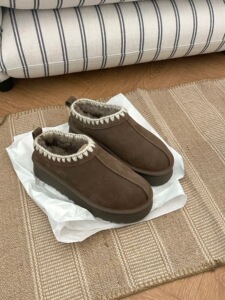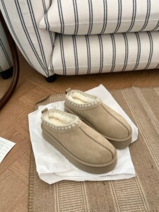 河南桑坡雪地靴女士磨砂牛皮2025新款毛线编织口一脚蹬民族风