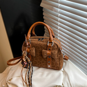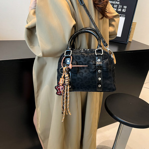 秋季女士手提包小拎包女2025新款简约豹纹小方包百搭单肩斜挎包