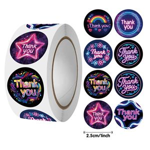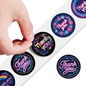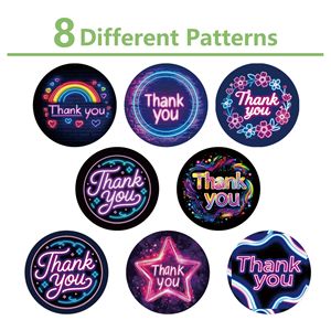 感谢霓虹贴纸礼物礼品500张1卷包装胶带封口贴跨境不干胶批发圆形