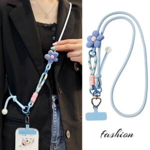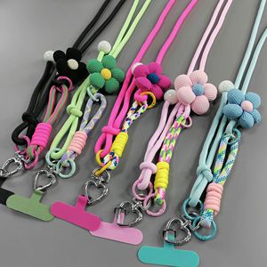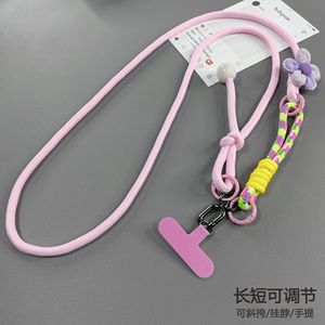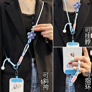 跨境彩球斜挎手机壳挂绳一绳三用可背手腕手提花朵挂绳钥匙扣挂件