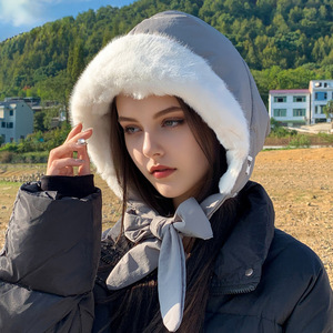 帽子女新款骑车防风防寒护耳棉帽冬季户外时尚百搭加厚保暖雷锋帽