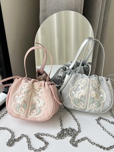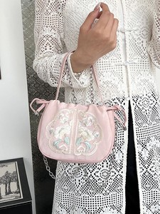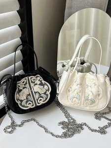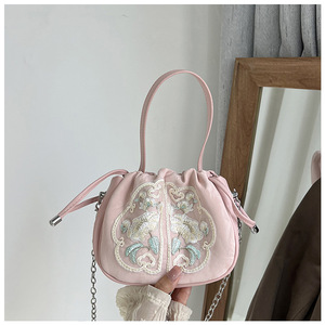 古风包包2025夏季新款时尚甜美链条手提斜挎包国风刺绣抽绳小包