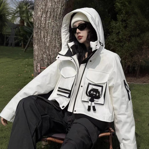 2025新款冬季羽绒服女可拆卸两件套短款连帽欧货小恶魔冲锋衣外套