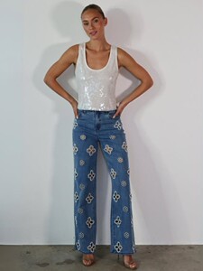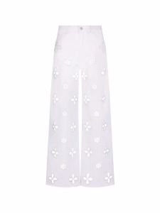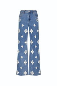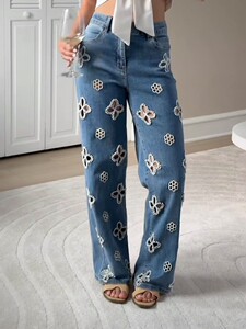 欧美跨境2025新款花朵镂空牛仔裤女士ins高街头宽松直筒修身长裤