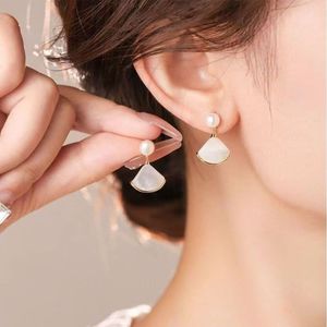 新款爆款扇形贝珍珠耳环女轻奢高级感气质百搭精致耳钉耳饰