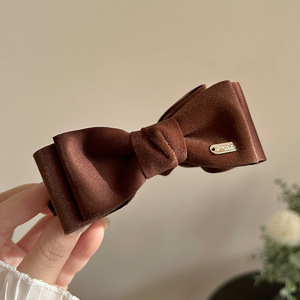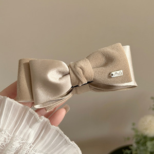 【绒缎】蝴蝶结香蕉夹-奶茶