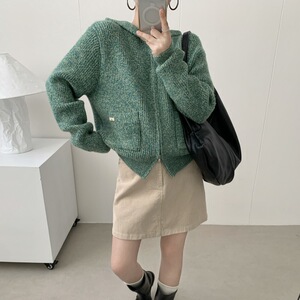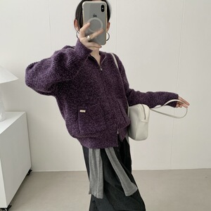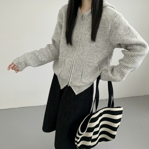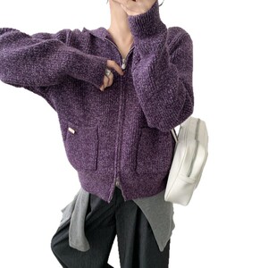 双拉链毛衣外套女秋冬2025新款慵懒风高级感宽松连帽针织开衫上衣