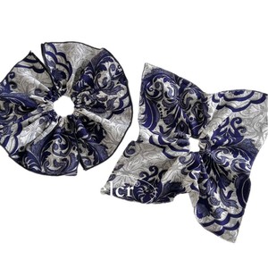 国风青花瓷图腾印花方巾大肠发圈新中式复古典雅扎头发绳发饰新款