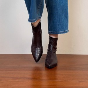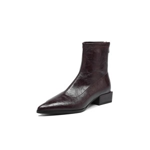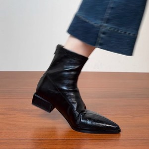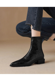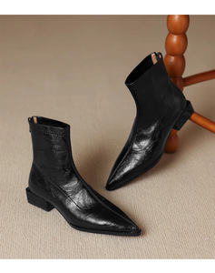 牛皮现货~尖头瘦瘦靴短靴女25秋冬百搭复古切尔西靴纯色粗跟单靴
