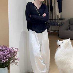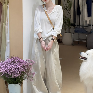 2025新款穿搭一整套高级感薄款长袖T恤宽松慵懒风休闲