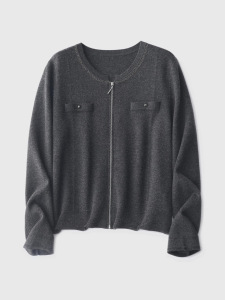 法式轻奢鎏金岁月绵羊毛衫拉链针织开衫短外套秋冬香风显瘦短外套