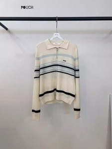 2025秋季新款韩国东大门复古时尚设计感撞色条纹半拉链翻领针织衫
