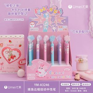 尤美捕鱼达喵扭扭中性笔趣味可拆卸配件卡通小猫书写中性笔黑色