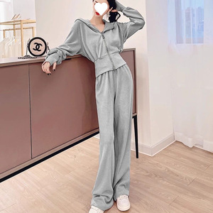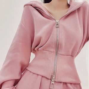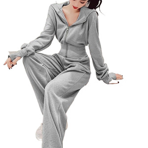 秋冬季运动服港风显高搭配套装纯色连帽薄款卫衣跑步服两件套女潮