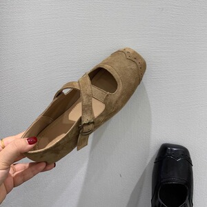 韩版法式小众平底交叉玛丽珍鞋女鞋子25早秋款复古棕色方头芭蕾舞
