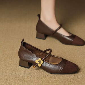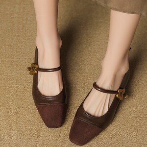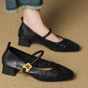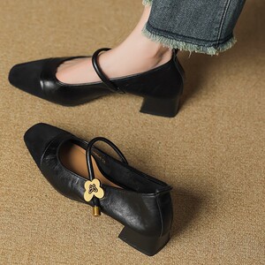 法式复古玛丽珍女鞋2025秋季新款一字式扣带方头舒适软底粗跟单鞋