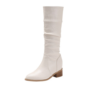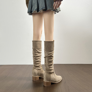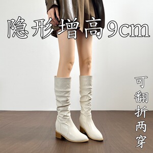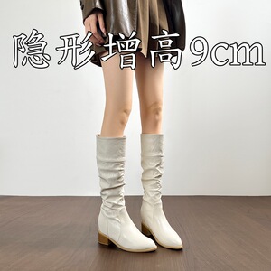 2025新款小个子内增高西部牛仔靴堆堆长靴复古不过膝女高筒骑士靴