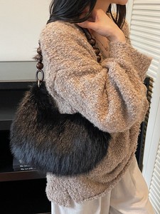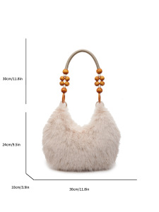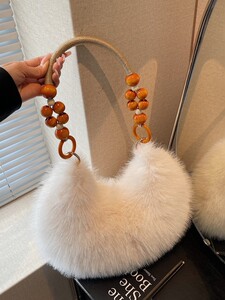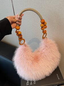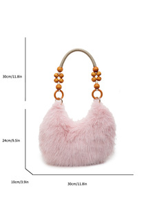 秋冬新款木珠手提毛绒单肩包手提包高颜值时尚包包女甜美可爱百搭