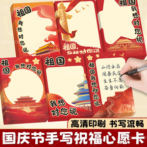 国庆节学生手写心愿卡我为祖国送祝福心愿卡中国风创意祝福纪念卡