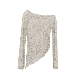 气质高级感不规则下摆晕染花朵斜领长袖针织衫上衣女