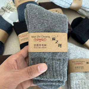 2025秋冬季新款特厚加绒羊毛袜子男高筒袜吸汗纯色休闲袜子批发