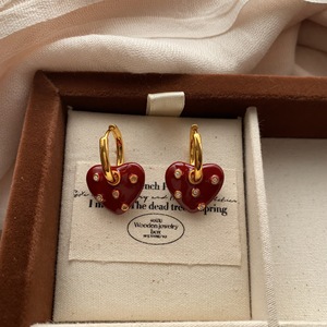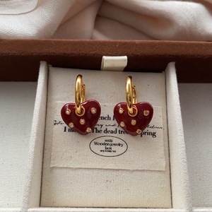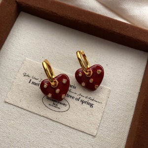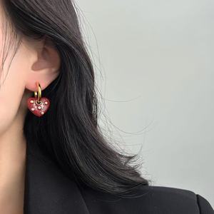 安可拉红滴油爱心锆石耳扣耳环秋冬新款气质独特精致优雅百搭耳饰