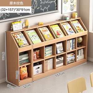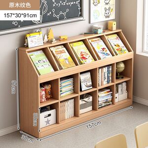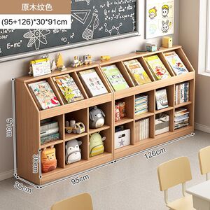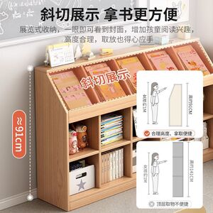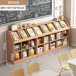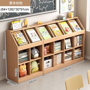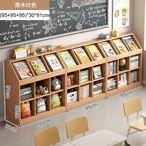 实木书架一体靠墙矮柜置物架落地书柜客厅收纳格子柜幼儿园书包柜