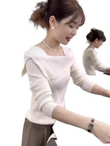一字领针织衫洋气时髦气质秋季设计感小众毛衣别致套头通勤上衣女