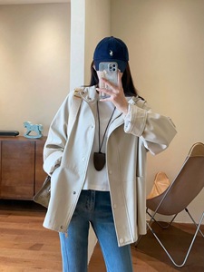 高品质天丝棉廓形显瘦小个子中长款工装连帽风衣夹克外套2025秋季